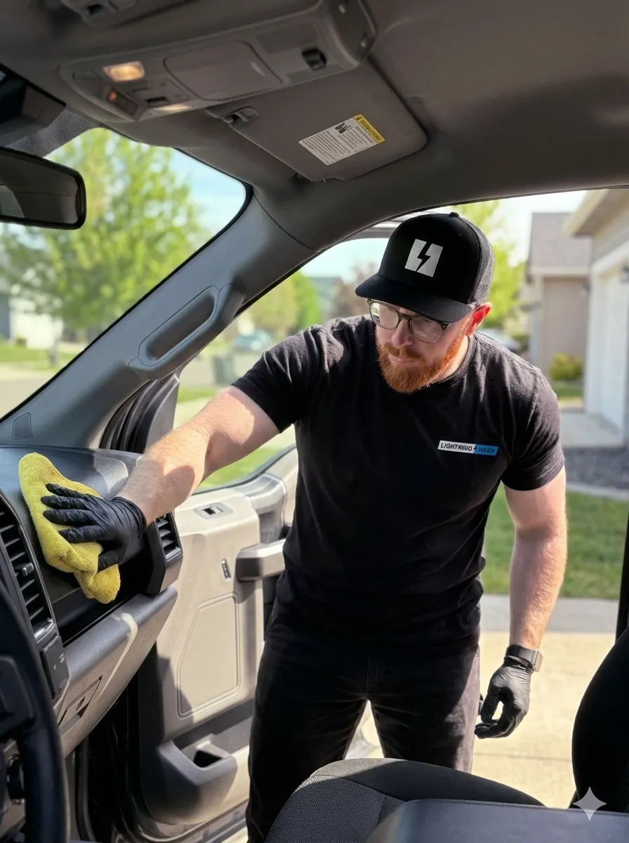 During winter months, Lightning Wash operates in what we call Winter Mode. Service shifts to focus more on interior cleaning, where winter wear shows up most. Snow, salt, moisture, kids, pets, and daily use take a bigger toll inside your vehicle during winter than on the exterior.